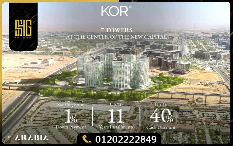 Core Mall KOR New Capital is a sustainable mixed-use development by Arabia Holding Real Estate Development between the Financial District and Culture & Arts City in New Administrative Capital, spanning 25 acres across seven towers. This environmentally-focused project offers commercial shops, administrative offices, medical clinics, and hotel apartments starting from 40 sqm with innovative architectural design. With prices beginning at EGP 6,000,000 and flexible payment plans requiring just 10% down payment over 8 years, Core Mall combines cutting-edge technology with international sustainability standards, delivering 2028.