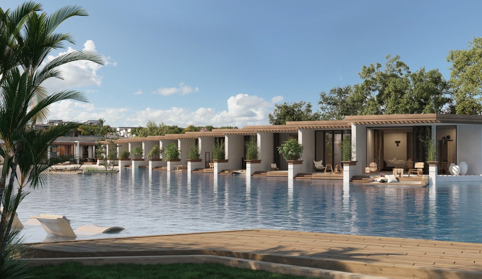 - The Wave Lake: A massive swimmable lagoon system that mimics the ocean’s movement, bringing the beach to the doorstep of the inner units.