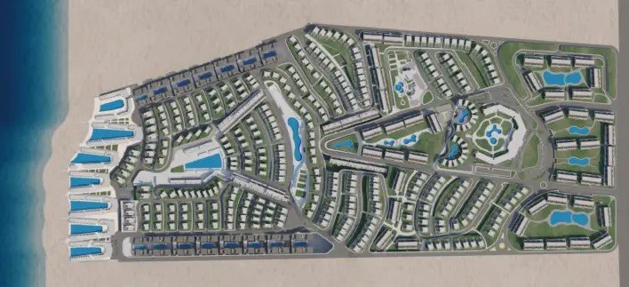 Location is the bedrock of real estate value. Direction White secures its status by occupying a prime plot at Km 192, placing it squarely in the center of the “Ras El Hekma Golden Triangle.”