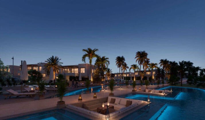 - Low Density Living: The developer has restricted the building footprint to just 21% of the total land area. The remaining 79% is dedicated to lush Mediterranean landscaping, lagoons, swimming pools, and service roads.