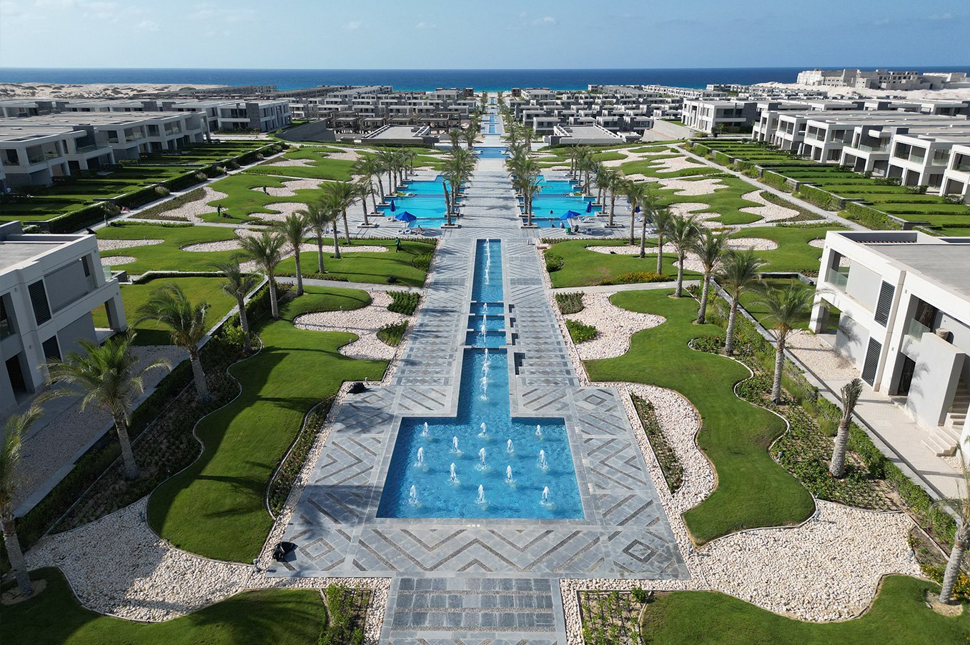 Spanning a colossal 1,100 acres, La Vista Ras El Hikma is designed to feel like a private city. The master plan respects the topography of the land, utilizing a terraced design that allows sea breezes and views to reach units set further back from the shore.